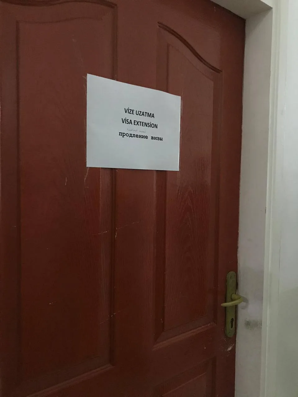 На посту, при входе, нужно показать паспорта и сказать, что идёте на продление визы. Там вам дадут жетон с номером очереди. На первом этаже нужно найти дверь с такой табличкой:
